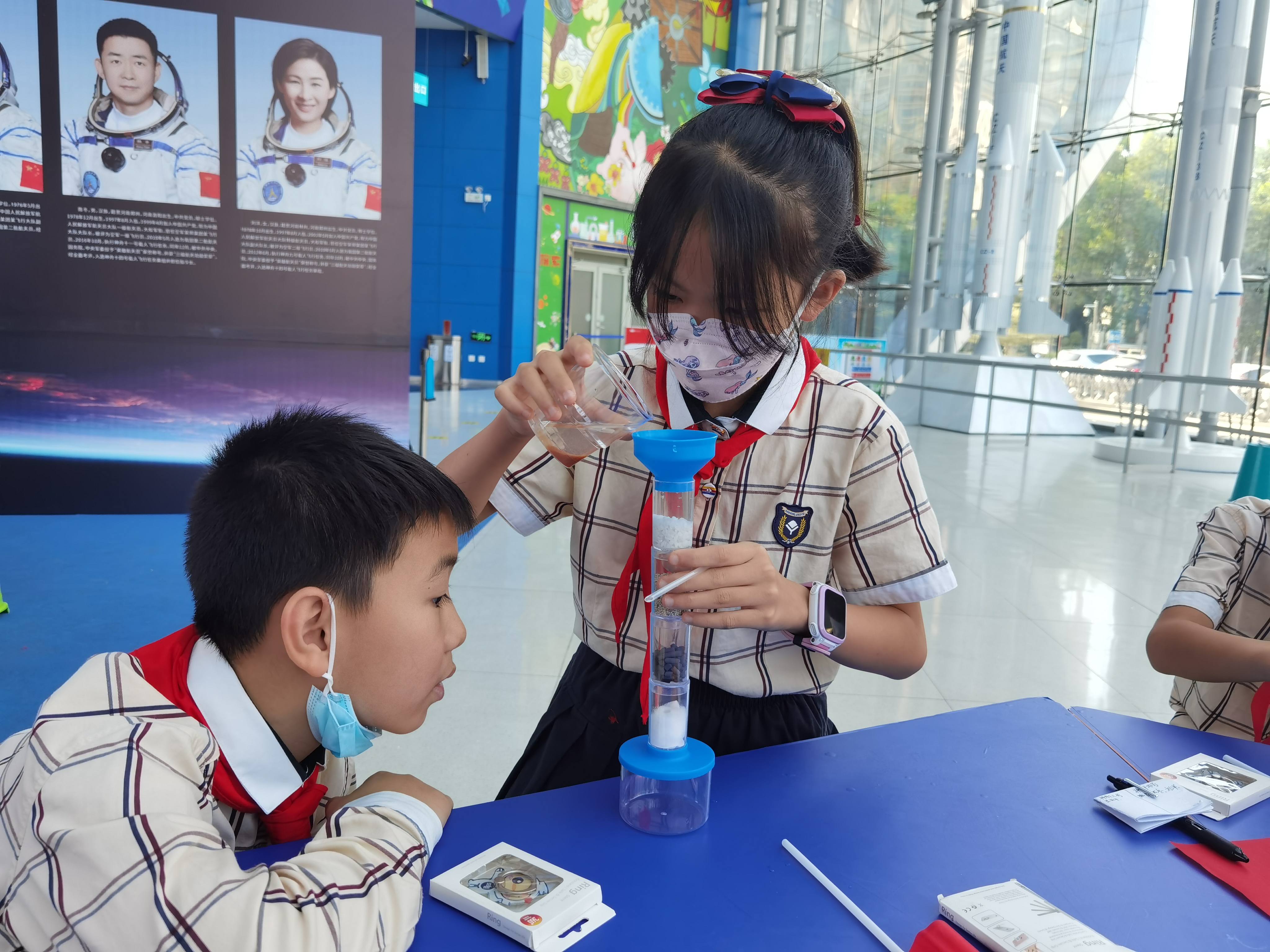 10月31日,中國空間站夢天實驗艙發射科普活動在廣西科技館舉行,來自廣西綠城水務股份有限公司的“水精靈”志願者們給同學們來了一場與水有關的“缤紛科學秀”,帶領大家共同探秘水世界。
