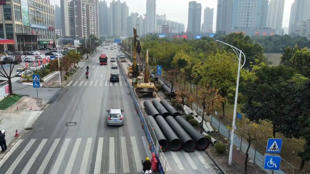 圖爲水建公司負責建設的雲景路(埌東加壓站—高坡嶺路)DN1000球墨鑄鐵給水管道工程施工現場